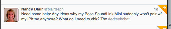 I saw this post and responded with a few tips from my personal experiences recently with Bluetooth connectivity issues. Luckily, these ideas helped Nancy solve her problem. This interaction is not unusual I realized. Just a day before I had posted: